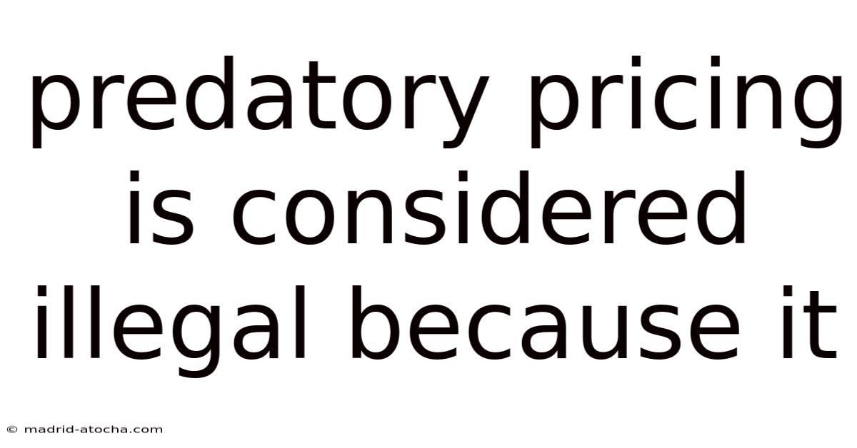 Predatory Pricing is Considered Illegal Because It Undermines Market Competition