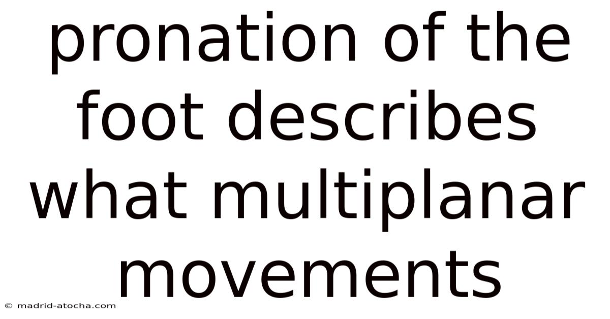 The human foot is a sophisticated structure that functions across three anatomical planes: the sagittal (front‑to‑back), frontal (side‑to‑side), and transverse (top‑to‑bottom). And during walking, running, or standing on uneven surfaces, the foot moves through a series of pronation and supination cycles that blend these planes. Worth adding: understanding how pronation engages each plane helps clinicians, athletes, and anyone interested in foot health prevent injuries, improve performance, and choose appropriate footwear. This article breaks down the multiplanar nature of foot pronation, outlines the key steps involved, explains the underlying science, answers common questions, and concludes with practical takeaways Took long enough..