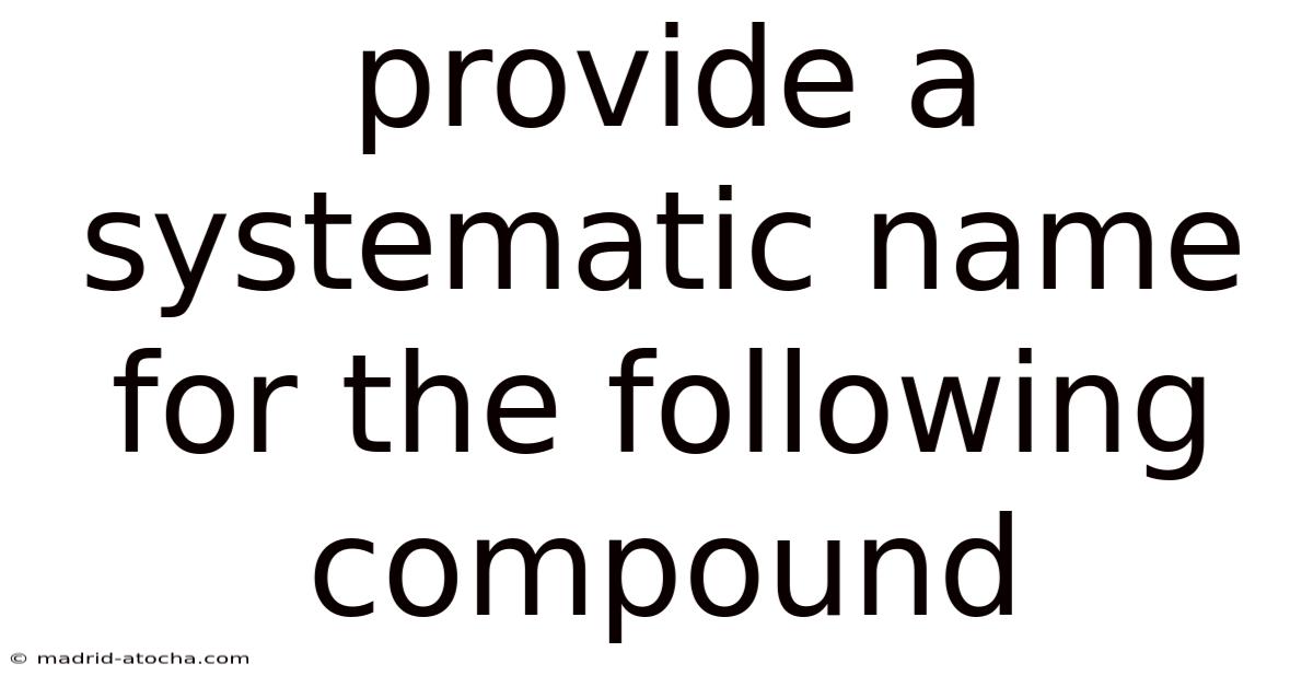 In organic chemistry, the systematic name of a compound is a unique and unambiguous name that is used to identify a specific compound. This name is based on the chemical structure of the compound and is used to distinguish it from other compounds with similar structures. In this article, we will explore the rules and guidelines for providing a systematic name for a given compound That alone is useful..