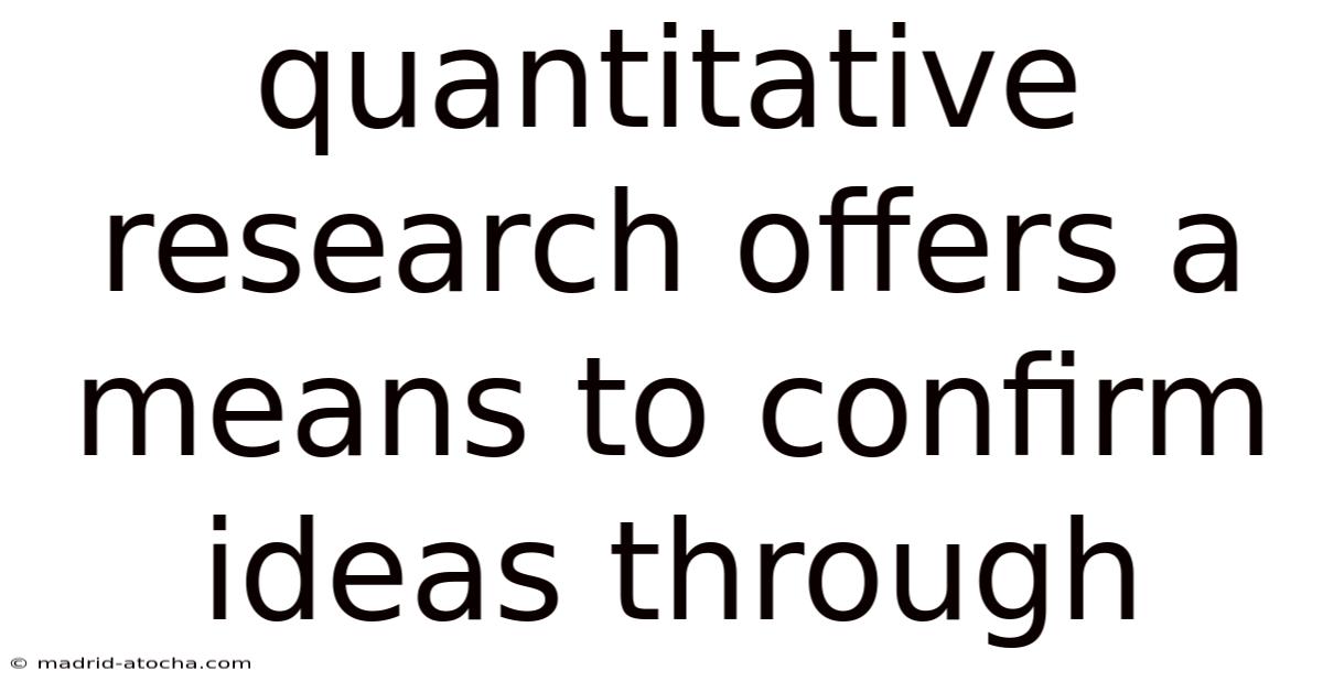 Quantitative research offers a means to confirm ideas through systematic data collection, statistical analysis, and objective measurement. On top of that, in academic and professional environments where evidence-based decision-making is key, this methodology transforms abstract theories into testable, verifiable frameworks. Worth adding: by focusing on numerical data and measurable variables, researchers can move beyond speculation and establish reliable conclusions that withstand peer review and real-world application. Whether evaluating educational interventions, testing medical treatments, or analyzing market trends, this approach provides a structured pathway to validate assumptions and drive meaningful progress.