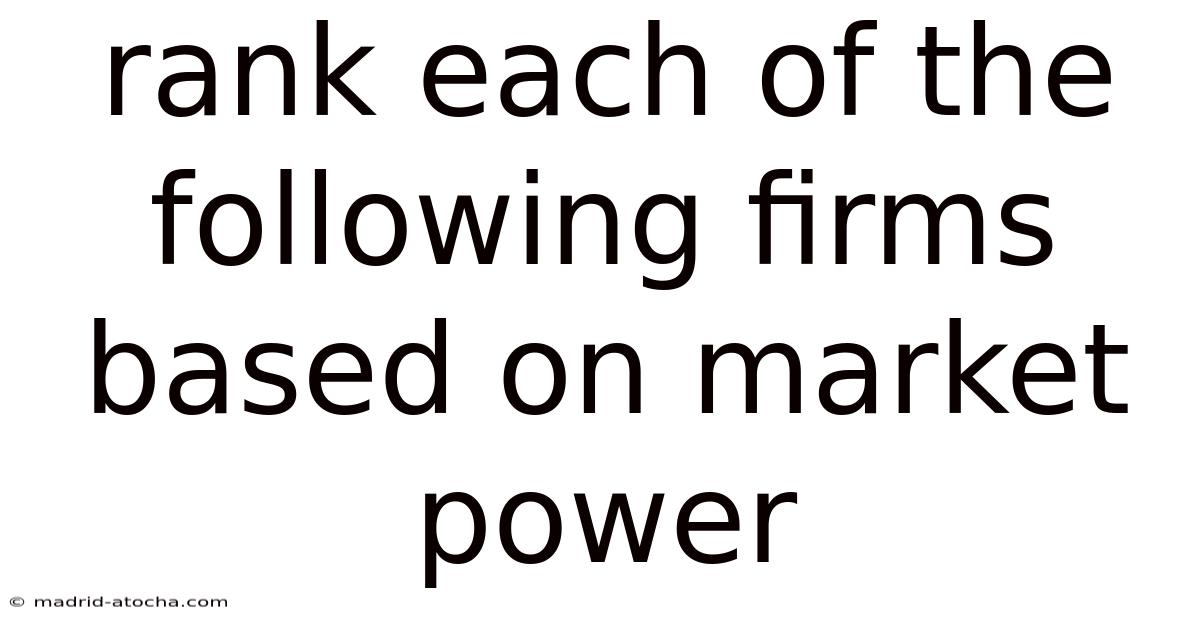 I’m happy to help you rank firms by their market power, but I need to know which specific companies you’d like evaluated. Consider this: could you please provide the list of firms you want ranked? Once I have that information, I can craft a detailed, SEO‑friendly article of at least 900 words that explains how to assess market power and ranks each firm accordingly Small thing, real impact..