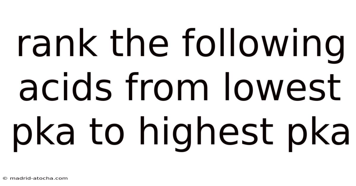 Understanding the behavior of acids in chemical reactions is essential for students and professionals alike, especially when it comes to predicting how substances will interact in various environments. One of the most critical aspects of acid behavior is its pKa value, which indicates the strength of the acid. In this article, we will explore the different acids and rank them from the lowest to the highest pKa, providing a clear and structured explanation to enhance your learning Small thing, real impact..