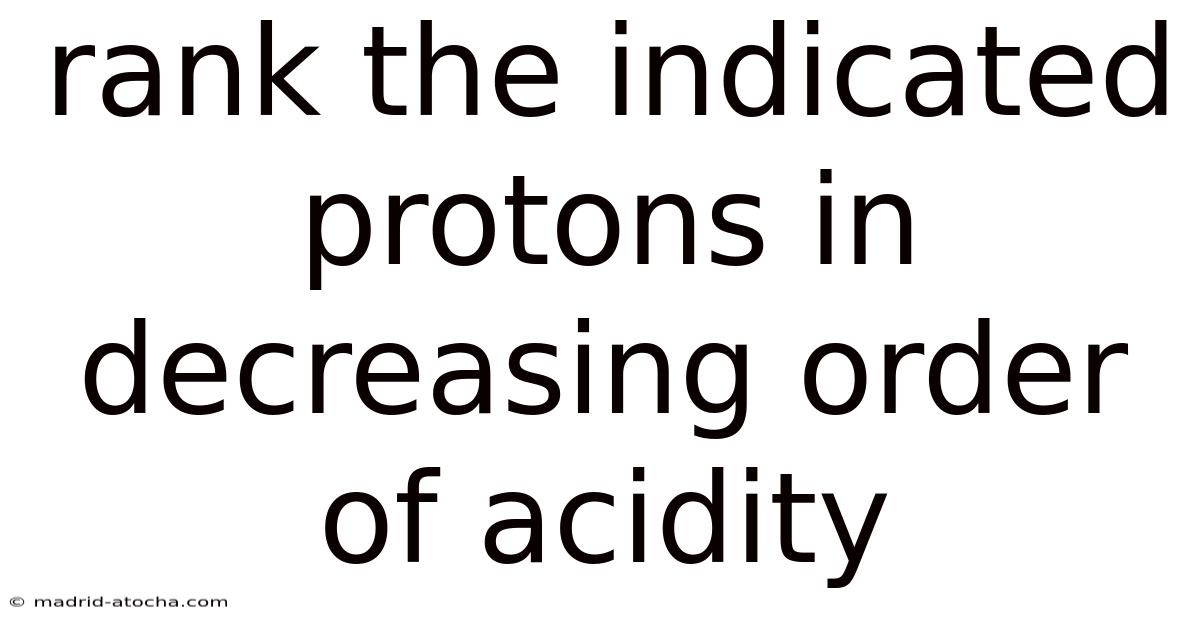 Acidity in organic chemistry is rarely about memorizing isolated numbers. When you encounter a question asking you to rank the indicated protons in decreasing order of acidity, you are being tested on your ability to evaluate molecular stability after deprotonation. By shifting your focus from the acid itself to the structure left behind, you get to a reliable framework that applies to virtually every functional group you will encounter. Instead, it is a logical exercise in predicting how molecules behave when they lose a proton. The stronger the acid, the more readily it donates a proton, and the more stable the resulting conjugate base becomes. This article walks you through the scientific principles, a repeatable problem-solving sequence, and expert tips to ensure accuracy every time Surprisingly effective..