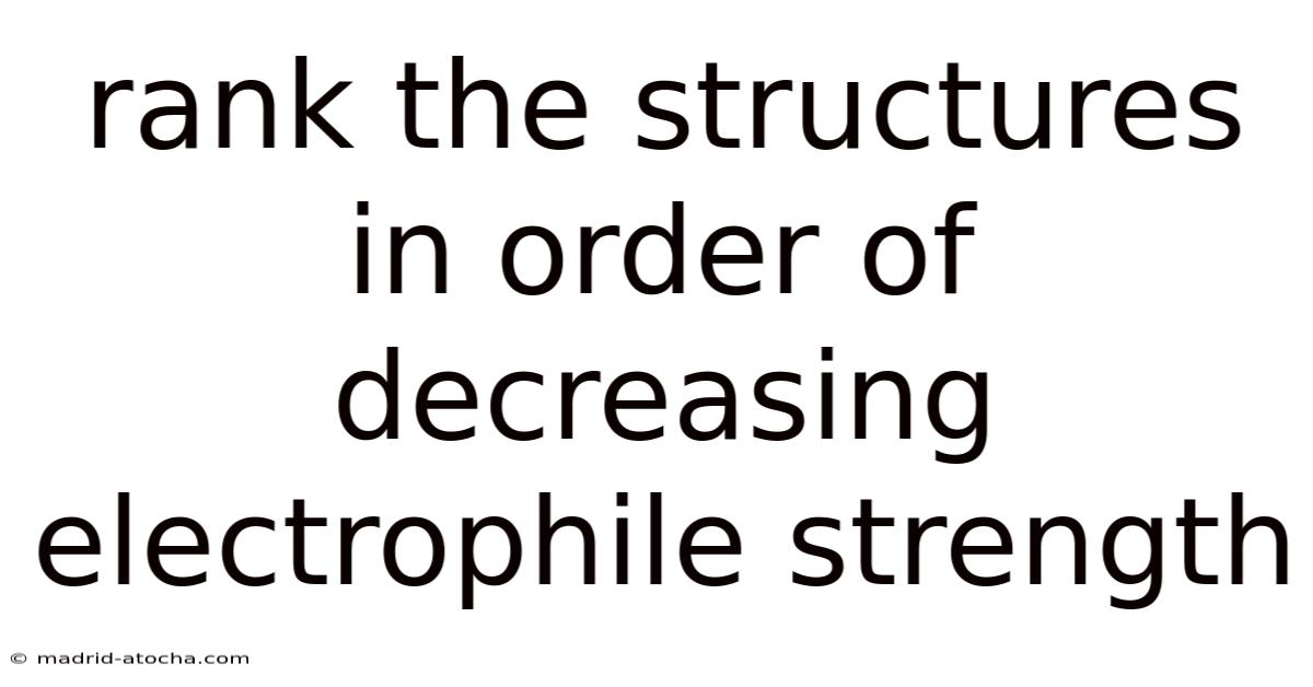 Electrophiles are electron-deficient species that seek electrons to form a new bond, playing crucial roles in organic reactions like nucleophilic substitution and addition. Understanding how to rank structures in order of decreasing electrophile strength is fundamental in predicting reaction outcomes and designing synthetic pathways. This ranking depends on factors such as charge distribution, atom electronegativity, and molecular stability after accepting electrons. Let's explore how to systematically evaluate and compare electrophilic strength across different chemical structures Not complicated — just consistent. Surprisingly effective..