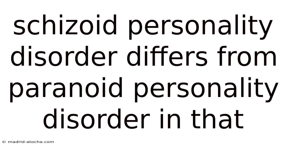 In a nutshell, while schizoid and paranoid personality disorders share some superficial similarities, they represent distinct psychological profiles with different underlying mechanisms, symptoms, and treatment approaches. By fostering greater awareness and reducing stigma, we can create a more supportive environment for those navigating these challenging conditions. And schizoid personality disorder is characterized by a fundamental disinterest in social relationships and a preference for solitude, while paranoid personality disorder is marked by pervasive distrust and suspicion of others. Which means understanding these differences is not merely an academic exercise—it has real-world implications for diagnosis, treatment, and interpersonal relationships. Every individual deserves to be understood and met with empathy, regardless of the psychological challenges they face Worth knowing..