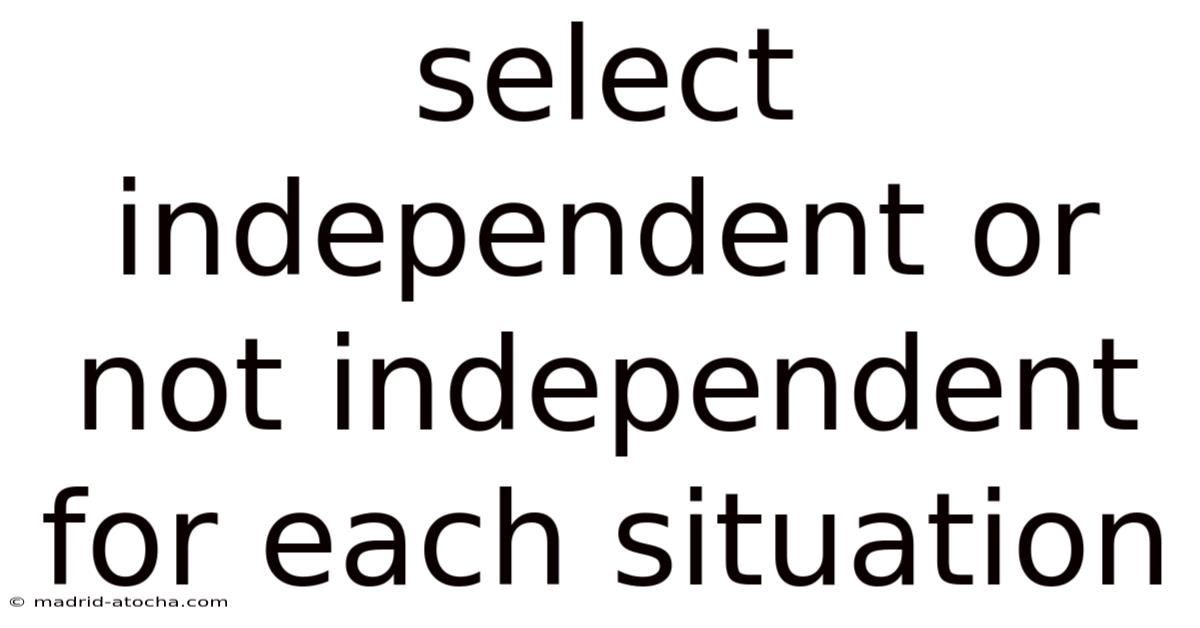 Select Independent or Not Independent for Each Situation