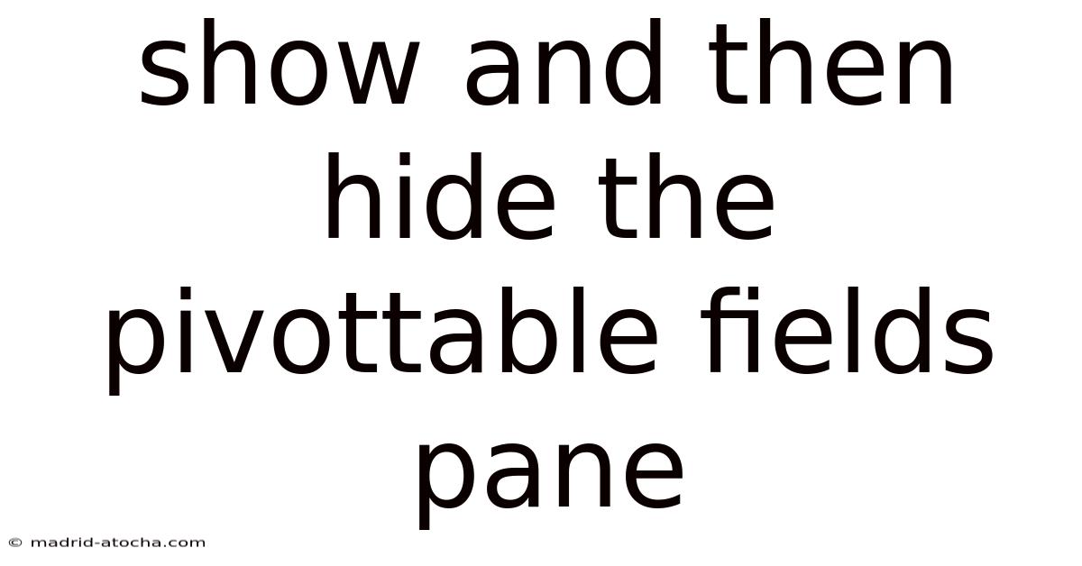 you gain immediate control over your workspace. In real terms, this seemingly small adjustment empowers you to tailor Excel's interface to your specific task at hand, whether that's building a complex report, presenting a clean summary, or diving deep into data exploration on a constrained screen. Practically speaking, ultimately, the ability to effortlessly manage the fields pane is not just about hiding a window; it's about cultivating a more focused, efficient, and professional approach to data analysis with PivotTables. Integrating this practice into your routine will streamline your workflow and enhance your overall effectiveness with one of Excel's most powerful tools.