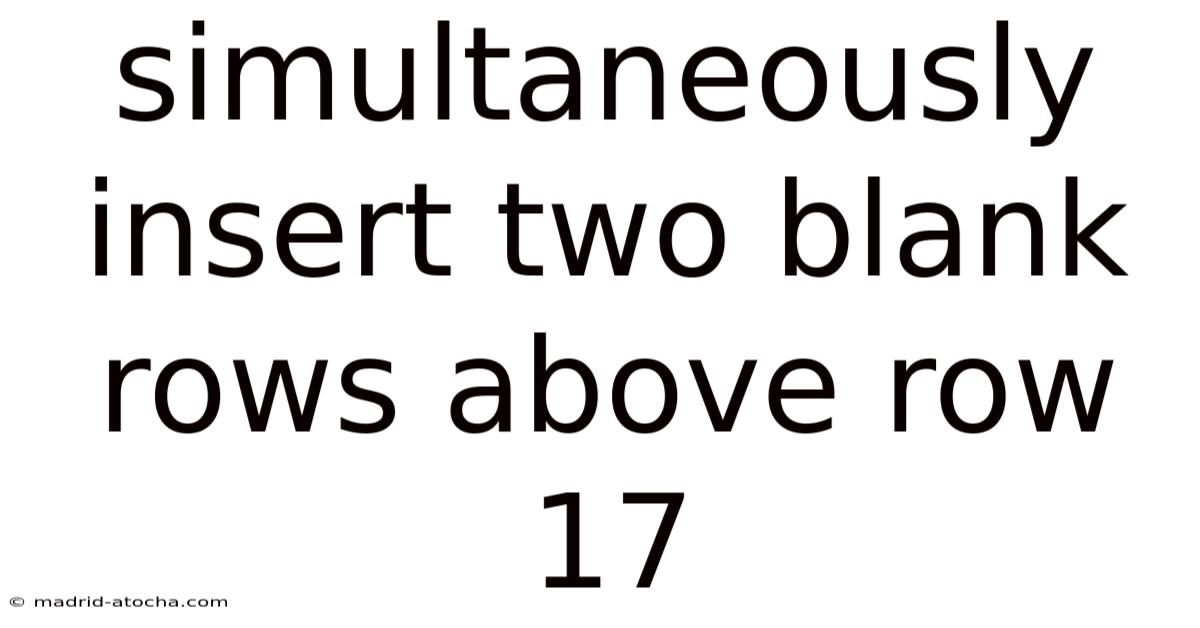 Simultaneously insert two blank rows above row 17 is a common task for anyone who works with spreadsheet applications such as Microsoft Excel, Google Sheets, or LibreOffice Calc. This operation allows you to shift existing data downward, create space for new information, and maintain a clean, organized layout without manually adding rows one at a time. In this article you will learn the most efficient methods to achieve the insertion, understand the underlying mechanics, avoid typical pitfalls, and find answers to frequently asked questions. By the end, you will be able to perform the insertion quickly, confidently, and with minimal disruption to your workflow Simple as that..