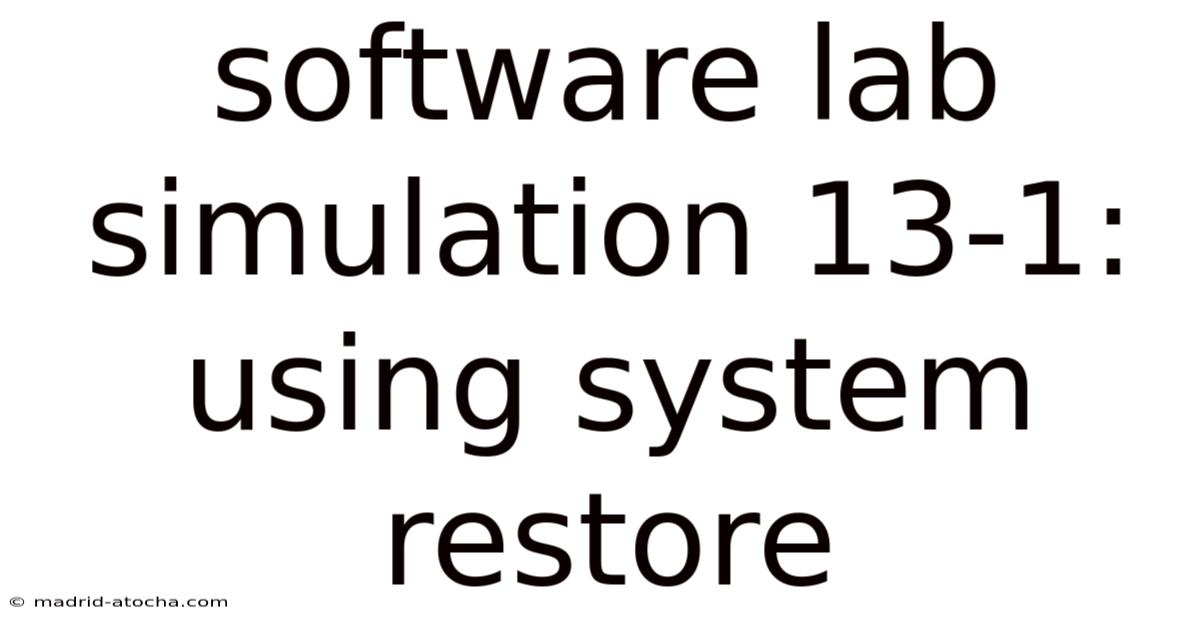 System Restore is a critical tool in software lab simulations, particularly in scenarios where users need to recover their systems to a previous stable state without losing essential data. In Software Lab Simulation 13-1: Using System Restore, learners are introduced to the practical application of this feature within a controlled environment. So this simulation is designed to teach users how to manage system recovery processes, emphasizing the importance of maintaining system integrity while troubleshooting errors. By simulating real-world scenarios, this lab helps users understand the mechanics of System Restore, its limitations, and best practices for its effective use. The goal is not just to perform the action but to grasp the underlying principles that make System Restore a reliable recovery mechanism Simple, but easy to overlook..