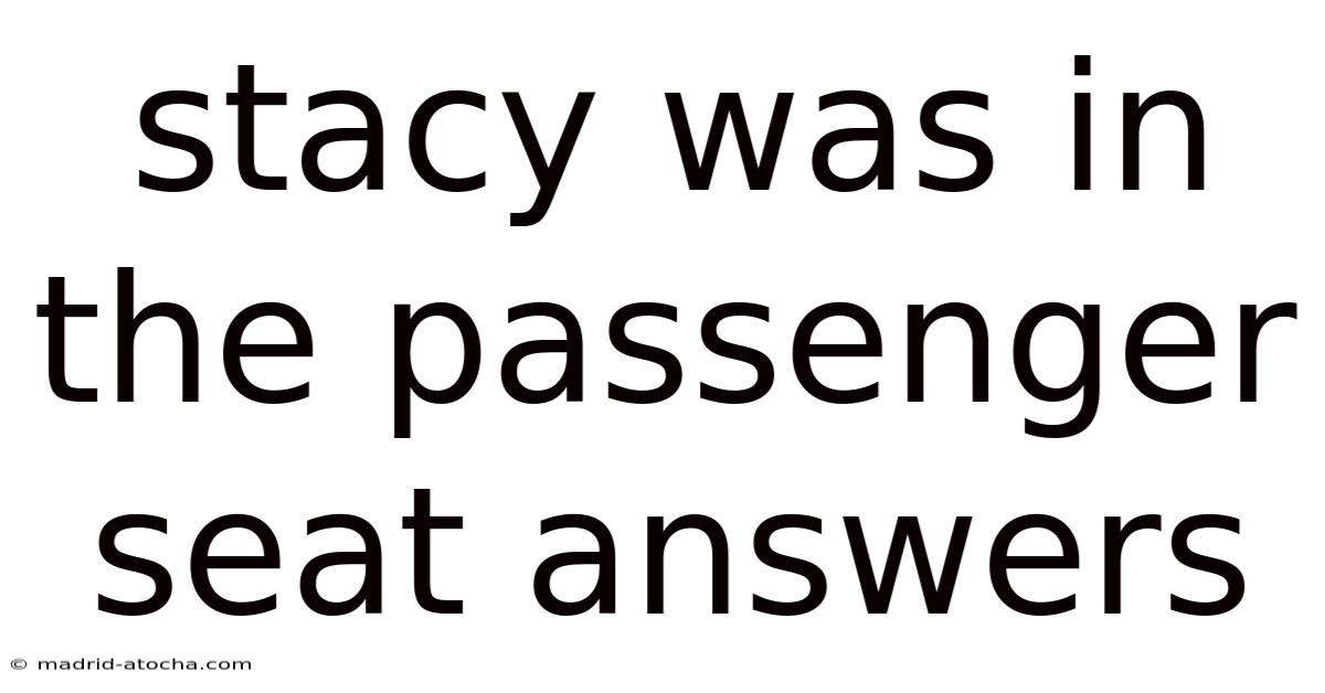 Stacy’s perspective often serves as a lens through which readers confront their own assumptions about authority, responsibility, and the dynamics of interpersonal relationships. Which means in moments where roles are subtly negotiated or contested, individuals like Stacy find themselves navigating unspoken expectations that shape their interactions. Still, whether in professional settings, familial dynamics, or personal conflicts, the passenger seat—often associated with relative passivity—becomes a symbolic space where power imbalances surface, and unspoken rules take precedence. Now, stacy’s experience with being positioned as the passenger seat highlights how physical proximity to others can influence communication patterns, decision-making processes, and even emotional responses. This scenario underscores the complex interplay between geography, perception, and behavior, inviting readers to reflect on how their own place in a situation might dictate outcomes. As Stacy navigated her role, she encountered challenges that tested her resilience, clarity of thought, and commitment to understanding the broader context surrounding her position. These moments demand not only adaptability but also a willingness to confront biases that might otherwise cloud judgment. That said, the passenger seat, though physically inert, becomes a metaphor for the constraints imposed by external perspectives, urging individuals to consider how their vantage point shapes their engagement with the task at hand. In this context, Stacy’s journey reveals the nuanced realities of shared spaces and the quiet struggles inherent in mediating between differing viewpoints Worth knowing..