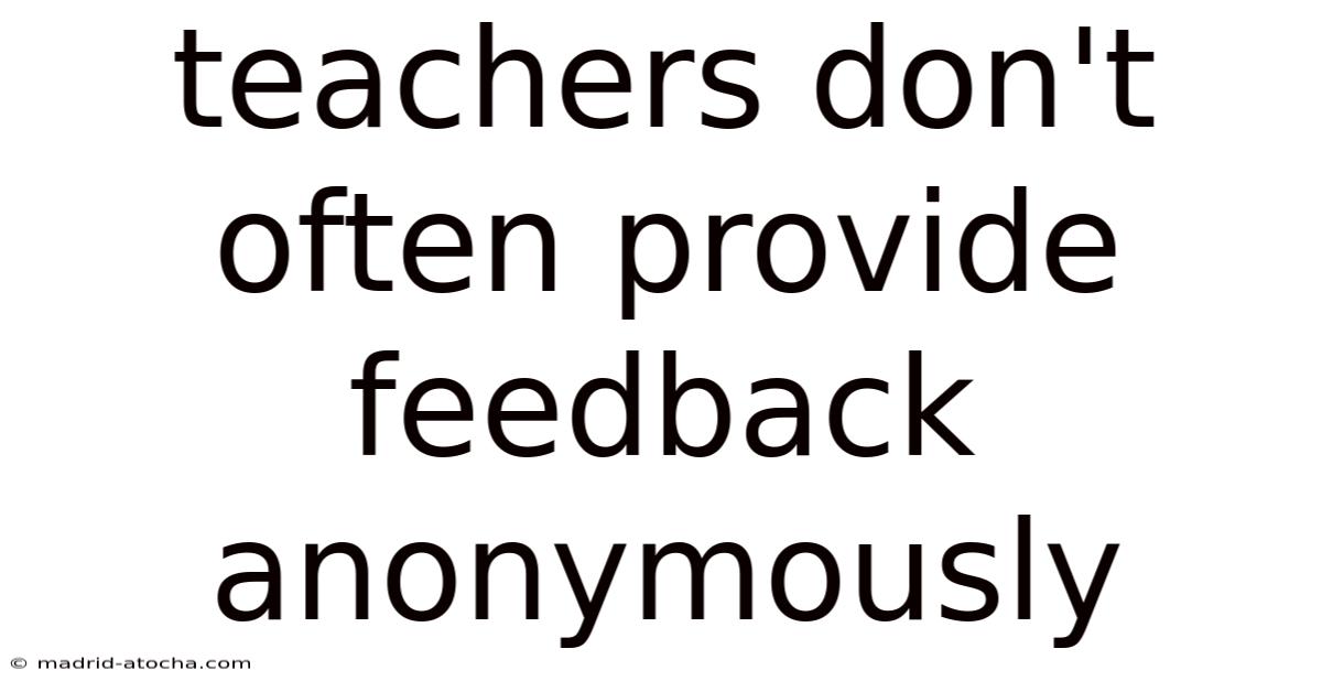 WhyTeachers Don’t Often Provide Feedback Anonymously: A Closer Look at the Barriers and Implications
