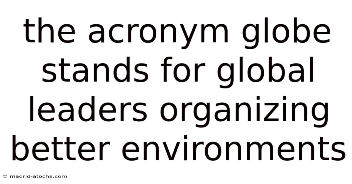 The Acronym Globe Stands For Global Leaders Organizing Better Environments