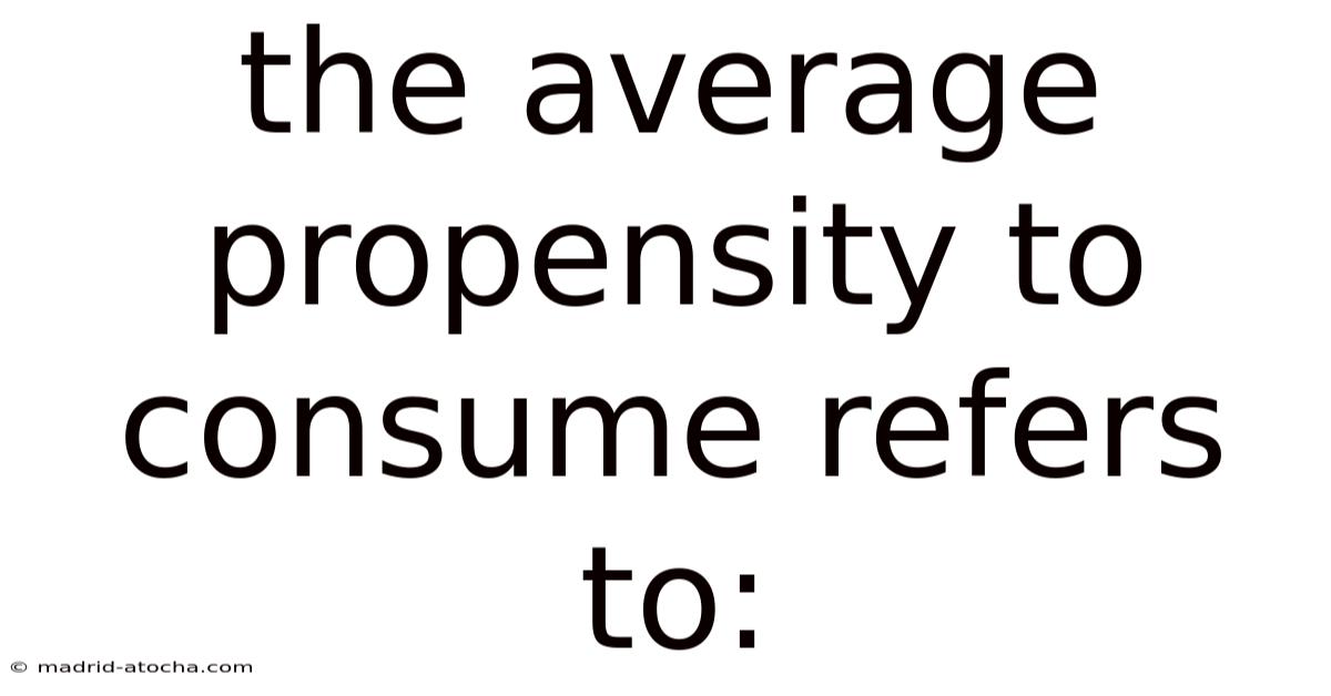 The AveragePropensity to Consume Refers to the Proportion of Income Spent on Goods and Services by Individuals or Households
