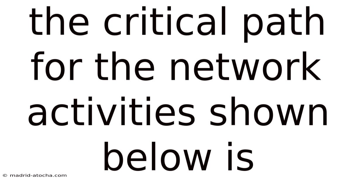 When project managers ask, the critical path for the network activities shown below is, they are looking for the longest sequence of dependent tasks that determines the shortest possible project duration. That said, identifying this path is not just an academic exercise; it is the backbone of effective project scheduling, resource allocation, and risk management. Whether you are a student studying operations research, a professional preparing for a PMP certification, or a team leader trying to deliver a complex initiative on time, mastering the Critical Path Method (CPM) will transform how you plan and execute work. This guide breaks down exactly how to analyze any project network diagram, calculate activity durations, and confidently determine which tasks hold the key to your project’s success Surprisingly effective..