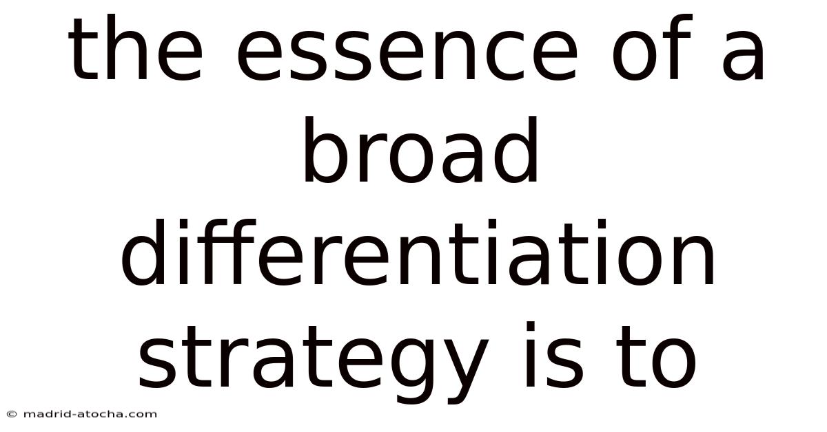 The essence of a broad differentiation strategy is to create unique value that appeals to a wide range of customers while allowing a firm to command premium prices and sustain a competitive edge. So unlike cost‑leadership approaches that focus primarily on price, broad differentiation seeks to blend distinct product features, superior service, strong brand identity, and innovative experiences into a package that resonates across multiple market segments. By doing so, companies can attract diverse buyer groups, reduce the risk of price wars, and build long‑term loyalty That alone is useful..
