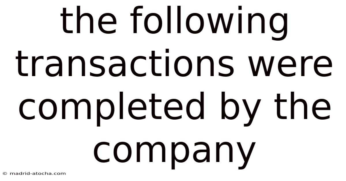 The Following Transactions Were Completed By The Company