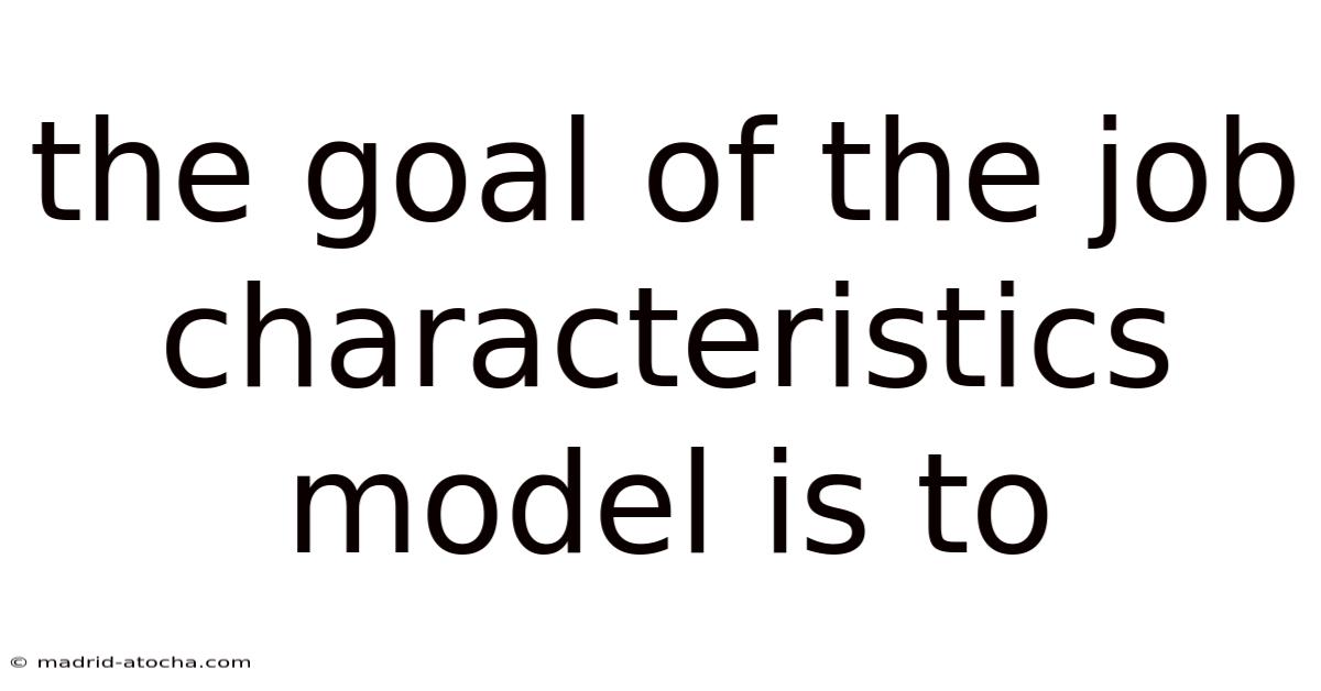 The Goal of the Job Characteristics Model: Enhancing Motivation, Satisfaction, and Performance Through Meaningful Work Design