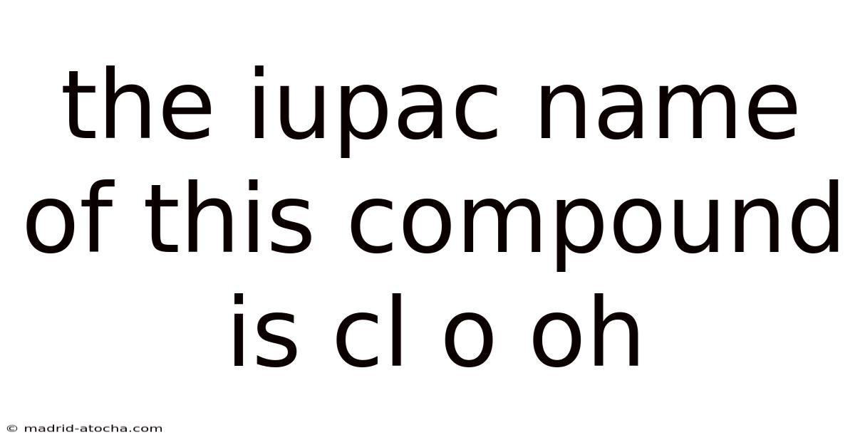 The IUPAC name for the compound with formula HClO is chloranol, reflecting its structure as a chlorine atom bonded to a hydroxyl group. This compound, commonly known as hypochlorous acid, represents an important class of chlorine oxoacids with significant applications in disinfection, water treatment, and biological systems. Understanding both its systematic IUPAC name and common name provides a complete picture of this chemically and practically important molecule Worth knowing..