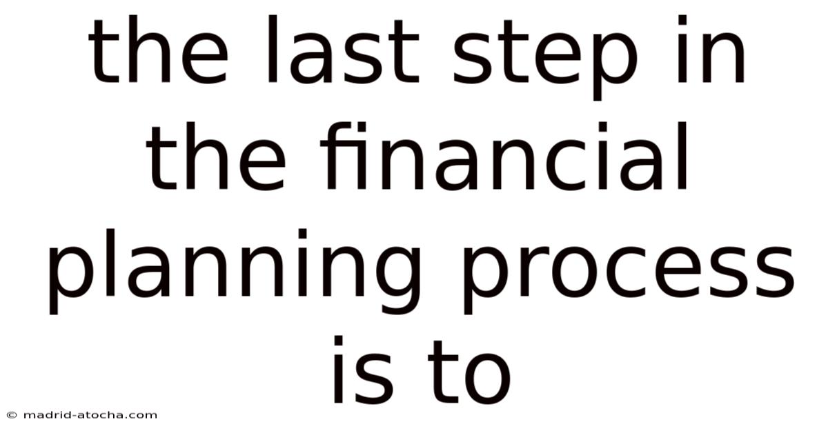 The last step in the financial planning process is to monitor and review your strategy consistently, transforming a static document into a dynamic roadmap for lifelong financial security. By tracking progress, adjusting to changes, rebalancing investments, and maintaining a disciplined review schedule, you confirm that every dollar continues working toward your defined objectives. On the flip side, it is the product of steady, intentional oversight over time. On the flip side, this phase is not an afterthought; it is the engine that sustains momentum, corrects course, and adapts to the unpredictable nature of life and markets. Worth adding: financial success is rarely the result of a single brilliant decision. Start treating your financial plan as a living system, commit to regular evaluations, and watch your long-term goals move steadily within reach That alone is useful..