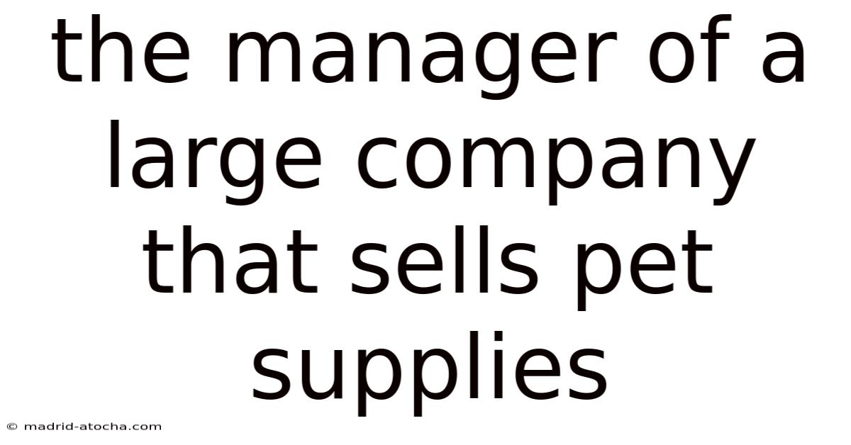 The Manager Of A Large Company That Sells Pet Supplies