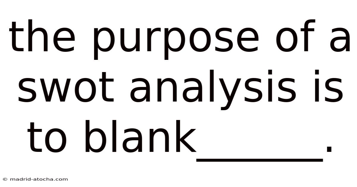 Why Is the Purpose of a SWOT Analysis to Blank?