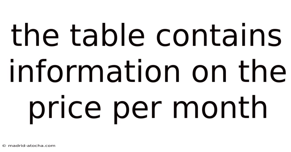 The concept of pricing per month is a fundamental element in many industries. That's why this pricing model is prevalent in sectors such as telecommunications, software as a service (SaaS), and various subscription-based services. It refers to the cost associated with a service, product, or subscription that is billed on a monthly basis. Understanding how to read and interpret the table that contains this pricing information is essential for making informed decisions and maximizing value.