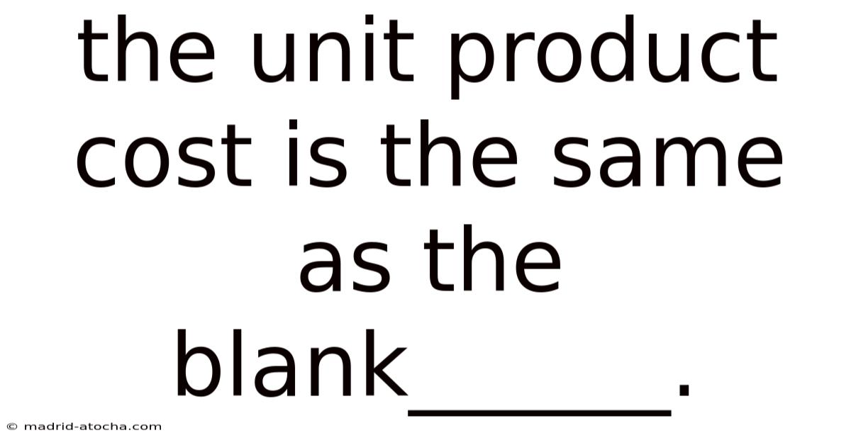 Q: Is unit product cost the same as total unit cost? Think about it: a: No. Total unit cost is a broader metric that includes all expenses tied to a unit, including selling, administrative, and distribution costs. Unit product cost only includes manufacturing costs, so it will always be lower than total unit cost for goods-producing businesses But it adds up..