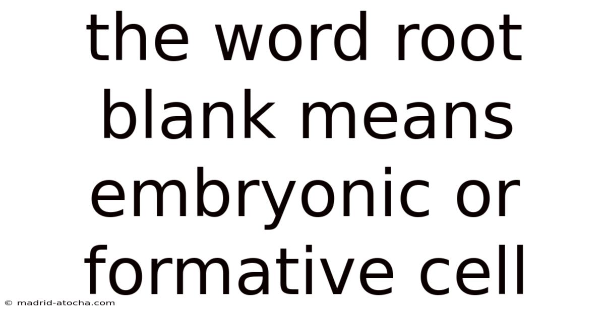 - Is "blank" the correct root? I think you meant "blast". You are absolutely correct. "Blank" is not a recognized root meaning embryonic cell. The correct root is blast, derived from Greek blastos (germ, sprout). I apologize for the error in the query phrasing.
