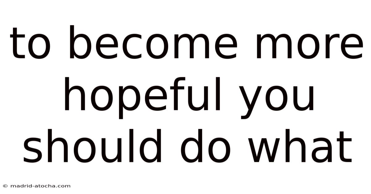 Hope is more than just a fleeting emotion; it is a powerful mindset that shapes how we work through life’s challenges. At its core, hope involves believing in the possibility of positive outcomes, even in the face of uncertainty. For many, cultivating hope is not just a personal goal but a necessity for mental resilience and overall well-being. The question to become more hopeful you should do what is not just about finding a single answer but understanding a series of intentional actions that can rewire the brain, shift perspectives, and build a more optimistic outlook. This article explores practical steps, scientific insights, and actionable strategies to help you develop and sustain hope in your daily life Which is the point..
