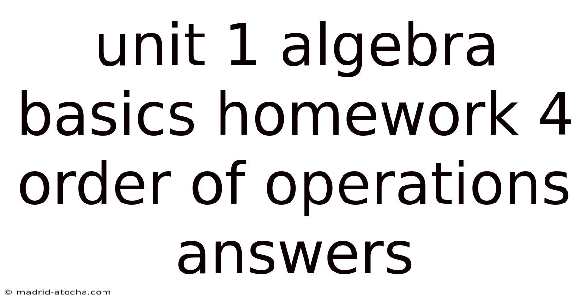 Unit 1 Algebra Basics Homework 4 Order of Operations Answers is the exact resource many students search for when they hit a snag on their first algebra assignment. Understanding the order of operations is the cornerstone of solving any algebraic expression correctly, and this article breaks down every concept, step, and tip you need to ace Homework 4 with confidence Simple as that..