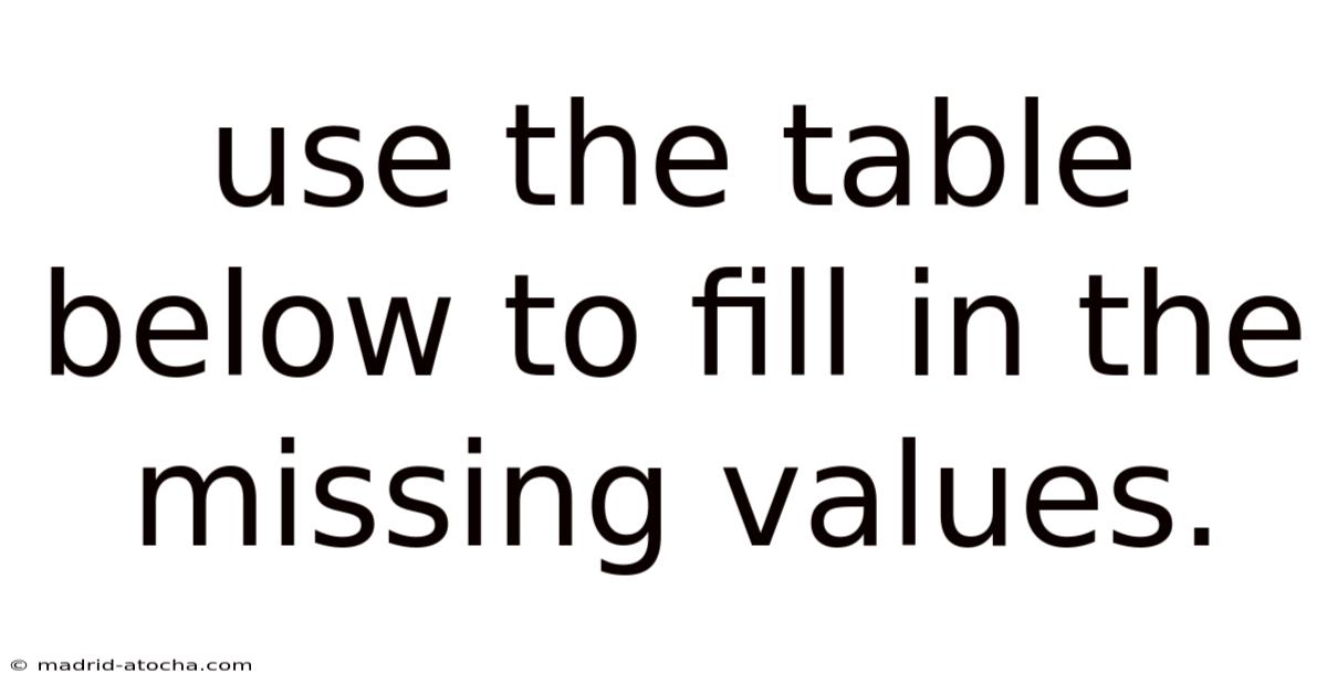 When you encounter a table that contains blank cells, the instinctive reaction is often to guess or leave the gaps untouched. However, a disciplined approach lets you use the table below to fill in the missing values accurately and efficiently. By understanding the underlying patterns, applying logical reasoning, and verifying your work, you can transform a fragmented dataset into a complete, reliable source of information. This article breaks down the methodology into clear steps, provides a concrete example, and answers the most frequently asked questions that arise during the process. ## Understanding the Structure of the Table