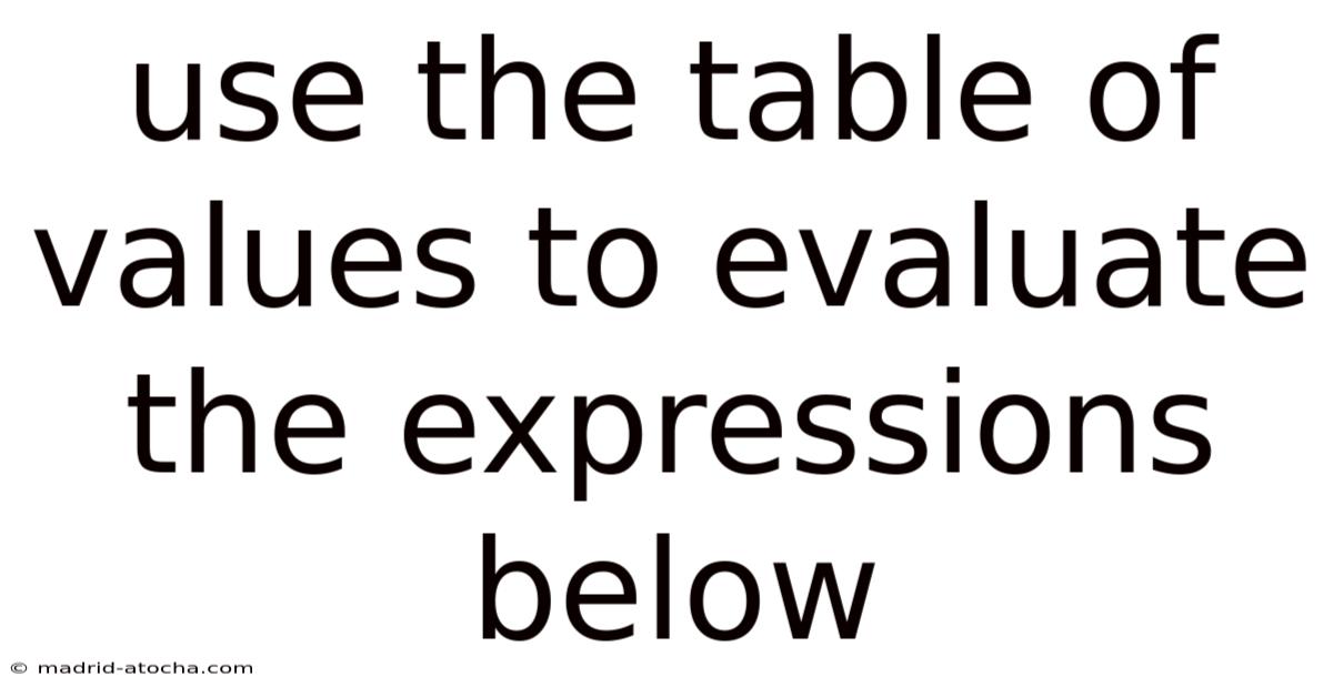 Use The Table Of Values To Evaluate The Expressions Below