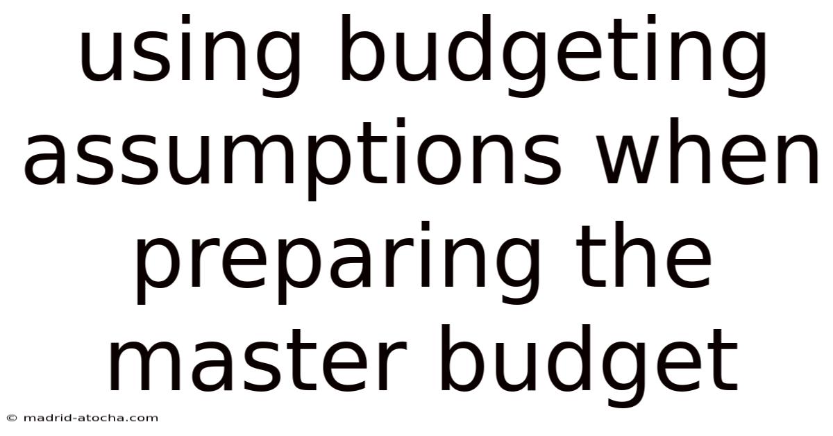 A master budget is the financial blueprint that guides a company's operations for the upcoming fiscal year. And it integrates all departmental budgets into a cohesive plan that includes projected income statements, balance sheets, and cash flow forecasts. At the heart of this planning process lies the use of budgeting assumptions—estimates about future conditions that shape the numbers in the budget. These assumptions are not just placeholders; they are the foundation upon which the entire master budget rests Most people skip this — try not to..