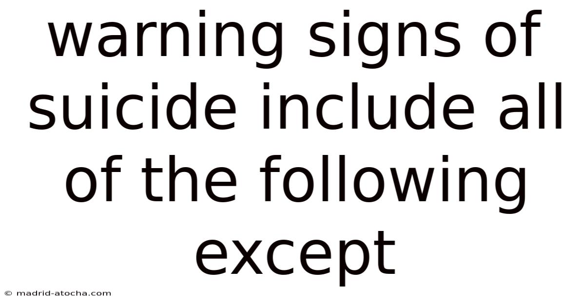 Recognizing the warning signs of suicide is critical for identifying individuals who may be at risk and providing timely support. On the flip side, not all signs are equally indicative of suicidal intent. While many people experience temporary emotional distress, certain behaviors and statements can signal a deeper crisis. This article explores the common warning signs of suicide and highlights one key exception that is often misunderstood Worth keeping that in mind. Turns out it matters..