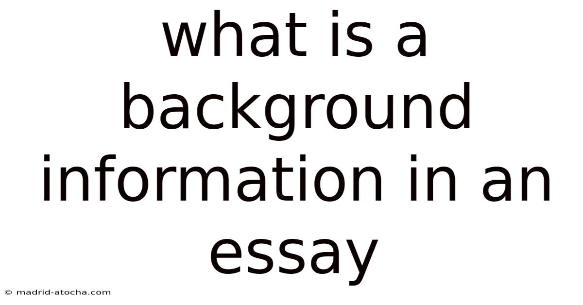 It’s also worth noting that background information can vary depending on the type of essay. Even so, in persuasive writing, it might underline supporting evidence, while in analytical essays, it could focus on historical or theoretical foundations. Regardless of the purpose, the key remains consistent: to provide clarity and context that enhance your message The details matter here..