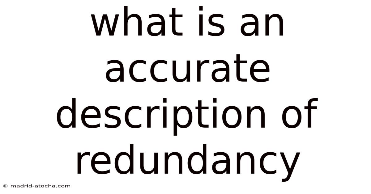 The accurate description of redundancy is best understood through its practical applications. Redundancy is not a one-size-fits-all concept; it is applied in diverse fields to address specific challenges Small thing, real impact..