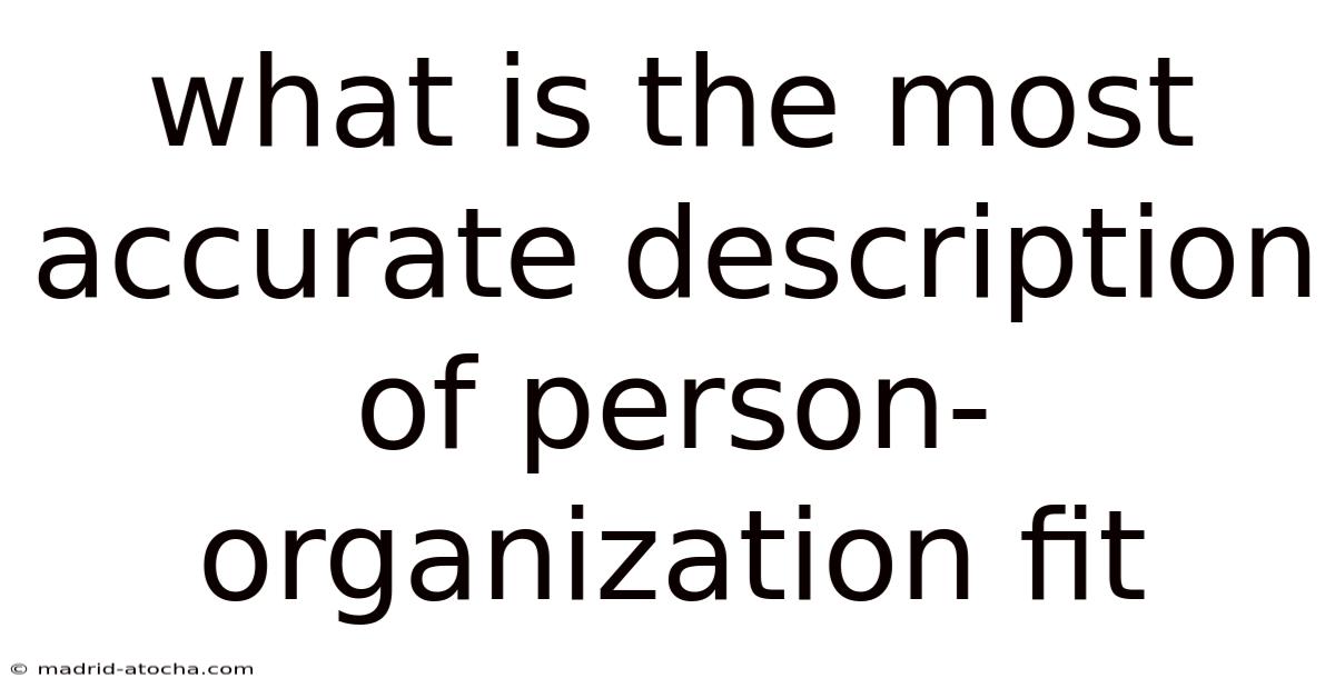 Understanding the most accurate description of person-organization fit is essential for anyone looking to excel in their professional environment. Here's the thing — this concept plays a important role in shaping employee performance, job satisfaction, and organizational success. When we walk through the nuances of person-organization fit, we uncover a complex interplay between individual traits and the structural elements of an organization. This article aims to provide a comprehensive exploration of this topic, highlighting the key aspects that define this critical factor in the workplace Less friction, more output..