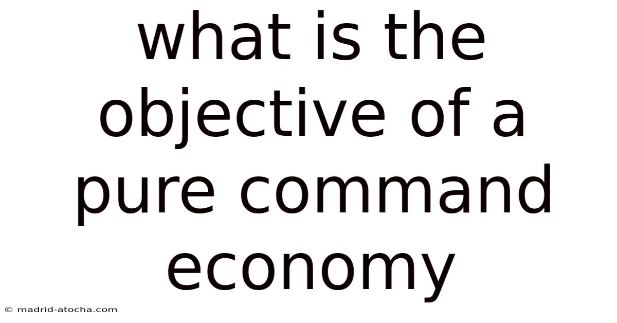 A pure command economy is a system where the objective of a pure command economy is to centralize all economic decision‑making in the hands of the state, eliminating private ownership of the means of production and market‑driven price mechanisms. In such a model, the government dictates what goods are produced, how they are produced, and who receives them, aiming to achieve specific social and political goals that market forces alone would not prioritize.