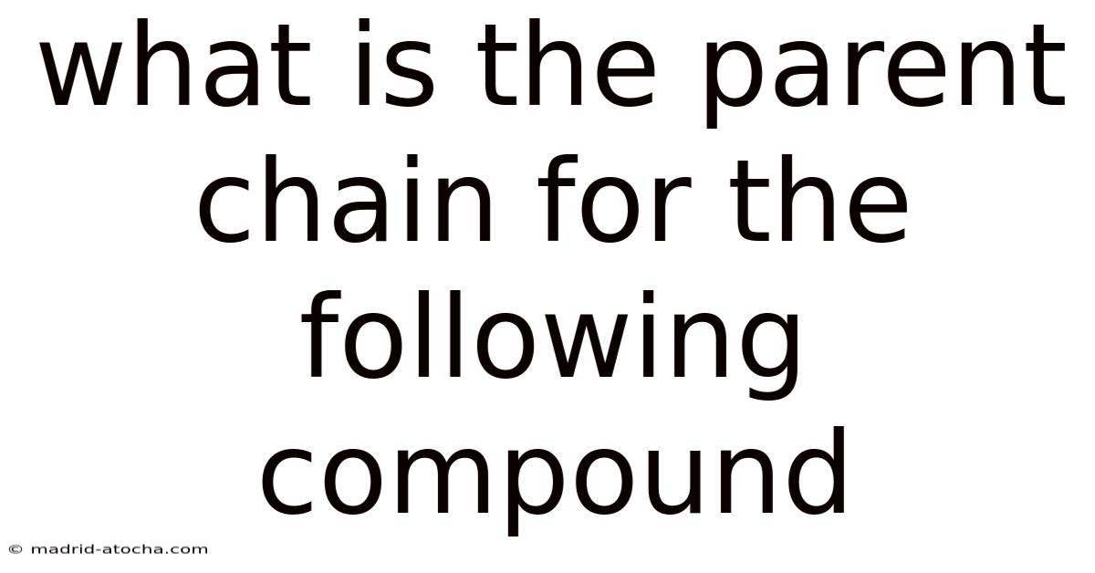 The parent chain is the backbone of any organic molecule. Day to day, understanding how to identify the parent chain is essential for naming compounds correctly, predicting reactivity, and communicating structural details to other chemists. And it is the longest continuous carbon skeleton that contains the highest‑order functional group, and it determines the base name of the compound. This article explains the concept in depth, outlines the rules for selecting the parent chain, and walks through several detailed examples to illustrate the process.