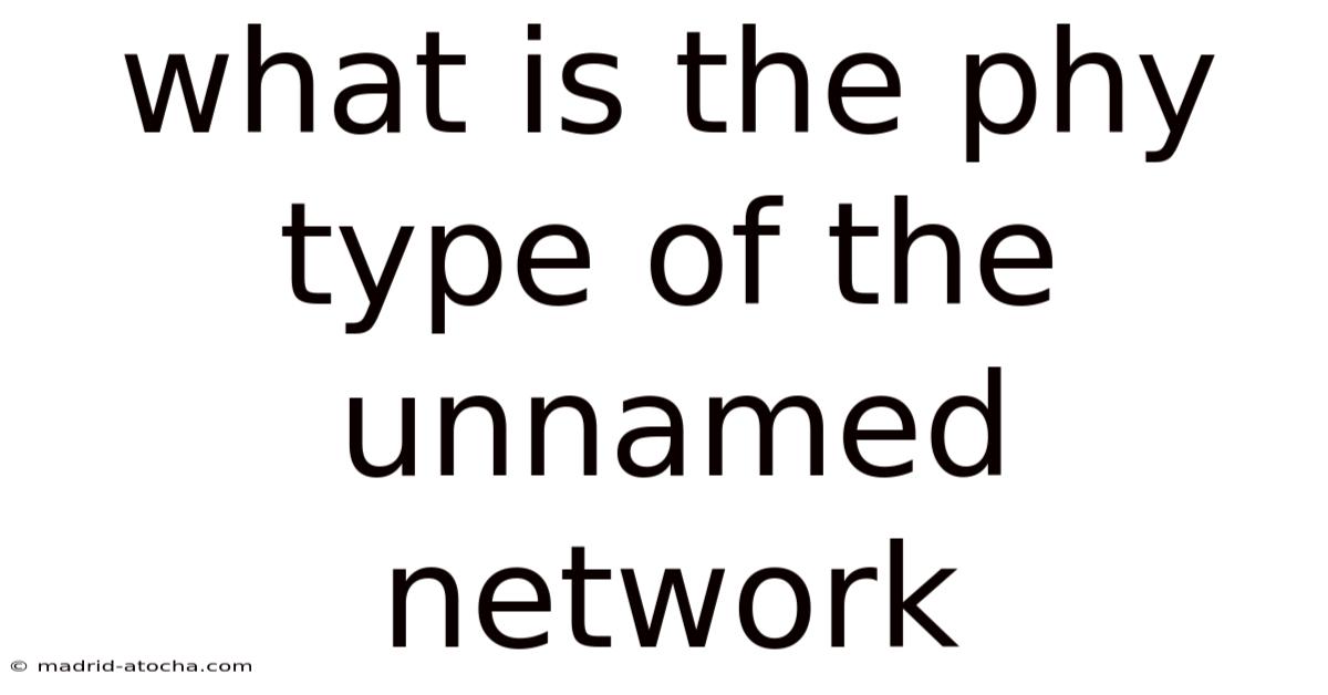 In the world of wireless networking, the term "Unnamed Network" often refers to an open or unconfigured wireless network that doesn't broadcast its SSID (Service Set Identifier). This can be seen in various settings, from public spaces to private networks that are intentionally hidden for security reasons. When we talk about the physical (PHY) type of such a network, we're diving into the underlying technology that enables wireless communication. Understanding the PHY type is crucial for network administrators, IT professionals, and even everyday users who want to optimize their connectivity or troubleshoot network issues.