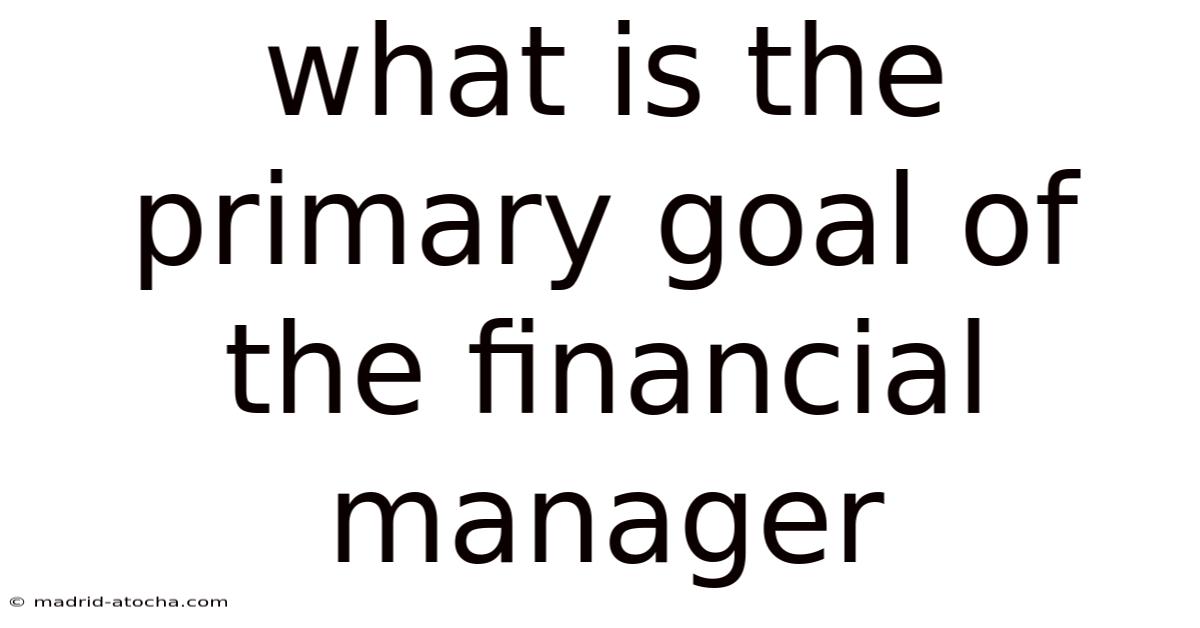 The primary goal of the financial manager is to maximize the wealth of the shareholders. Practically speaking, this overarching objective serves as the guiding principle for all financial decisions and strategies implemented by the financial manager within an organization. To fully understand this goal, it's essential to get into its implications, the methods used to achieve it, and the broader context of financial management.