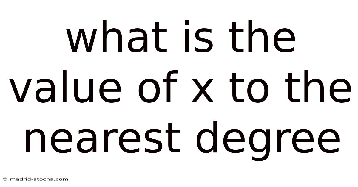 In mathematics, the letter x frequently represents an unknown variable. When a problem specifically asks for the value of x in the context of angles, it is almost always referring to an angle measured in degrees. Practically speaking, the phrase “to the nearest degree” is a precise rounding instruction. Plus, it means that after you calculate the exact decimal value of the angle, you must round it to the closest whole number. To give you an idea, if your calculation yields 34.2°, the answer becomes 34°. Still, if it shows 56. 8°, you round up to 57°. And this rounding convention is widely used because many practical applications do not require extreme decimal precision, and whole-degree measurements are significantly easier to communicate, measure, and apply in fields like construction, navigation, and design. Understanding this instruction removes ambiguity and ensures your answer aligns with standard mathematical expectations.