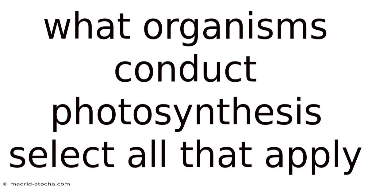 Plants are the most well-known organisms that conduct photosynthesis. They are multicellular eukaryotes that have specialized structures called chloroplasts, which contain chlorophyll and other pigments necessary for capturing light energy. Photosynthesis in plants primarily occurs in the leaves, where chloroplasts are abundant.