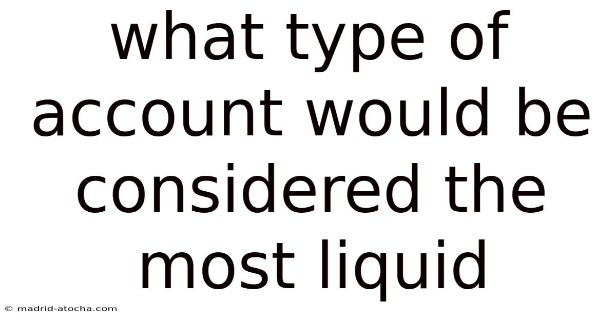 When evaluating what type of account would be considered the most liquid, checking accounts consistently meet the strictest criteria for immediacy, cost, and certainty.