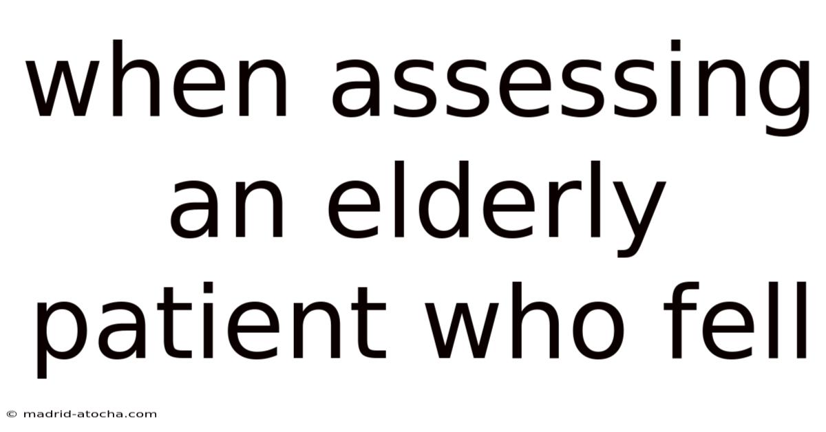 When assessing an elderly patient who fell, a critical moment that demands precision, empathy, and a meticulous approach to ensure safety and recovery. That's why this process requires not only clinical expertise but also a deep understanding of the patient’s unique circumstances, ensuring that care is designed for their specific needs rather than a one-size-fits-all solution. Because of that, yet, despite these challenges, a systematic assessment remains essential to identify risks, pinpoint causes, and implement effective interventions. The elderly population is uniquely susceptible to falls due to a combination of physiological, environmental, and psychosocial elements. For individuals aged 65 and above, who frequently experience age-related changes in mobility, balance, and cognitive function, a thorough evaluation becomes not merely a medical task but a profound act of care. In real terms, such incidents often reveal more than just a physical injury; they unveil underlying vulnerabilities, hidden health conditions, and the complex interplay of factors that contributed to the fall. In this context, the goal is clear: to pinpoint the root causes of the fall, mitigate future risks, and provide a foundation for recovery that prioritizes dignity, comfort, and long-term well-being. The complexity of such assessments often arises from the interplay of multiple variables—physical limitations, medication side effects, environmental hazards, and even emotional distress—that must be addressed concurrently. By approaching the situation with care, professionals can transform a potentially traumatic event into an opportunity for healing, reinforcing trust between patient and caregiver while safeguarding against recurrence.
