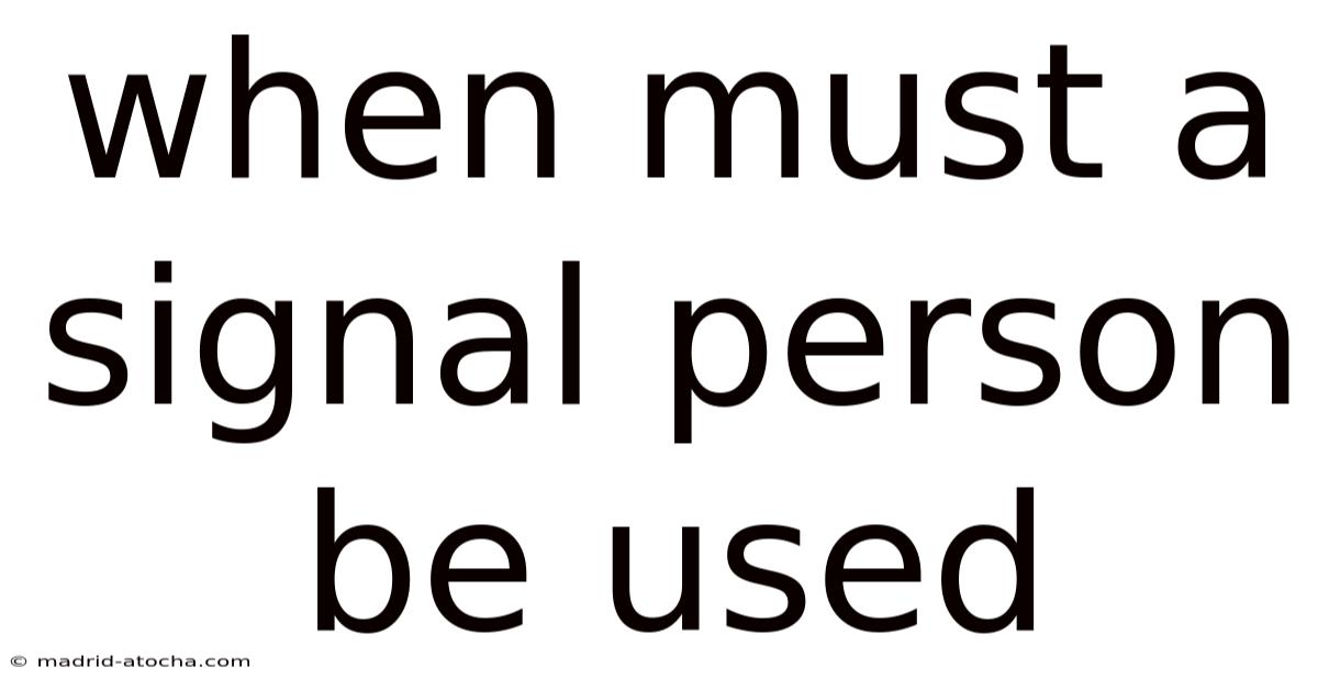 In the dynamicworld of construction, manufacturing, and various industrial settings, the movement of heavy loads, large vehicles, and complex machinery is a daily reality. While technology provides tools like cameras and sensors, the human element remains crucial for ensuring the safety of workers, the equipment, and the surrounding environment. This is where the signal person becomes an indispensable asset. Their role transcends simple communication; it's a specialized function vital for preventing catastrophic accidents and ensuring smooth, efficient operations. Understanding precisely when a signal person must be used is fundamental knowledge for anyone involved in these high-risk environments, from site supervisors and equipment operators to safety officers and workers Worth keeping that in mind..