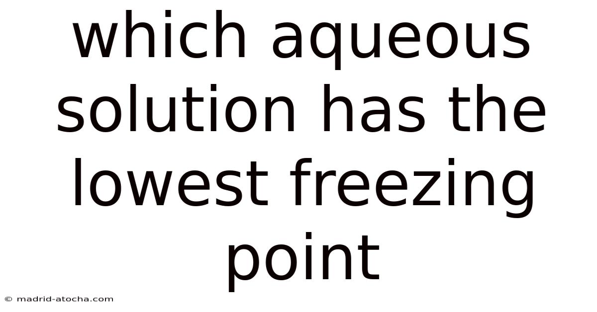 To identify which aqueous solution has the lowest freezing point, several factors must be examined carefully. These factors work together to determine how much the freezing point will drop compared to pure water.