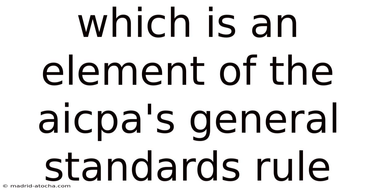 The AICPA (American Institute of Certified Public Accountants) General Standards Rule sets the foundation for high‑quality professional services in accounting, auditing, and consulting. Here's the thing — understanding which element belongs to this rule is essential for CPAs, audit teams, and anyone involved in financial reporting. Think about it: this article explains the core elements of the General Standards Rule, why they matter, and how they are applied in everyday practice. By the end, you will be able to identify the specific element that defines the rule and see how it integrates with the broader framework of professional standards.