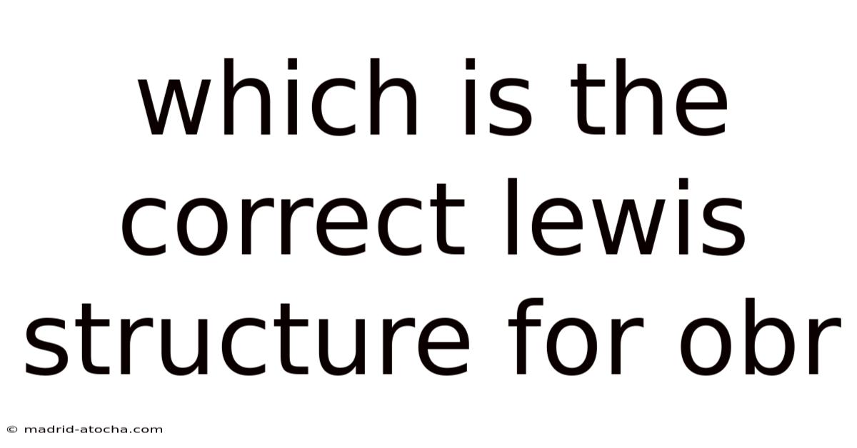 The molecule OBr (bromine monoxide) is a simple diatomic species that often appears in discussions of halogen oxides, atmospheric chemistry, and radical reactions. Determining the correct Lewis structure for OBr is essential for understanding its bond order, formal charges, and reactivity. In this article we will walk through the step‑by‑step construction of the Lewis diagram, examine the underlying valence‑electron count, compare alternative resonance forms, and explain why one particular arrangement best satisfies the octet rule and minimizes formal charges. By the end, you will be able to draw the correct Lewis structure for OBr confidently and appreciate how this knowledge applies to real‑world chemical contexts such as ozone depletion and combustion processes Simple as that..