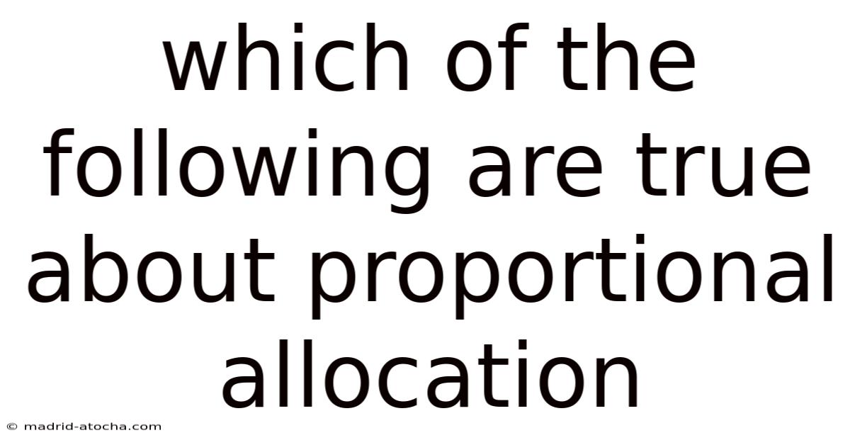 The concept of proportional allocation has long served as a cornerstone in the realm of resource distribution, economic policy, and organizational management. Even so, its application is not without nuance, as the success of such systems often hinges on precise implementation, stakeholder collaboration, and an understanding of the underlying dynamics at play. Which means at its core, proportional allocation refers to the practice of distributing resources, opportunities, or responsibilities in a manner that reflects existing proportions within a population or system. In this discussion, we will explore the validity of several assertions surrounding proportional allocation, examining their alignment with theoretical foundations, practical applications, and potential limitations. Whether applied in the allocation of educational funding, political representation, or even the distribution of goods in a community, proportional allocation offers a structured approach that balances individual circumstances with collective harmony. In practice, this principle is rooted in fairness, efficiency, and equity, ensuring that what one group receives aligns with their relative contributions or needs. By delving into these aspects, we aim to clarify whether proportional allocation remains a viable and effective strategy in contemporary contexts, while also highlighting areas where its application may require adaptation or refinement.